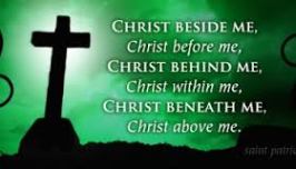Christ be with me, Christ be behind me, Christ be within me, Christ be beside me, Christ to win me. Christ to comfort and restore me, Christ to be where danger threatens, Christ be in the hearts of those around me forevermore.