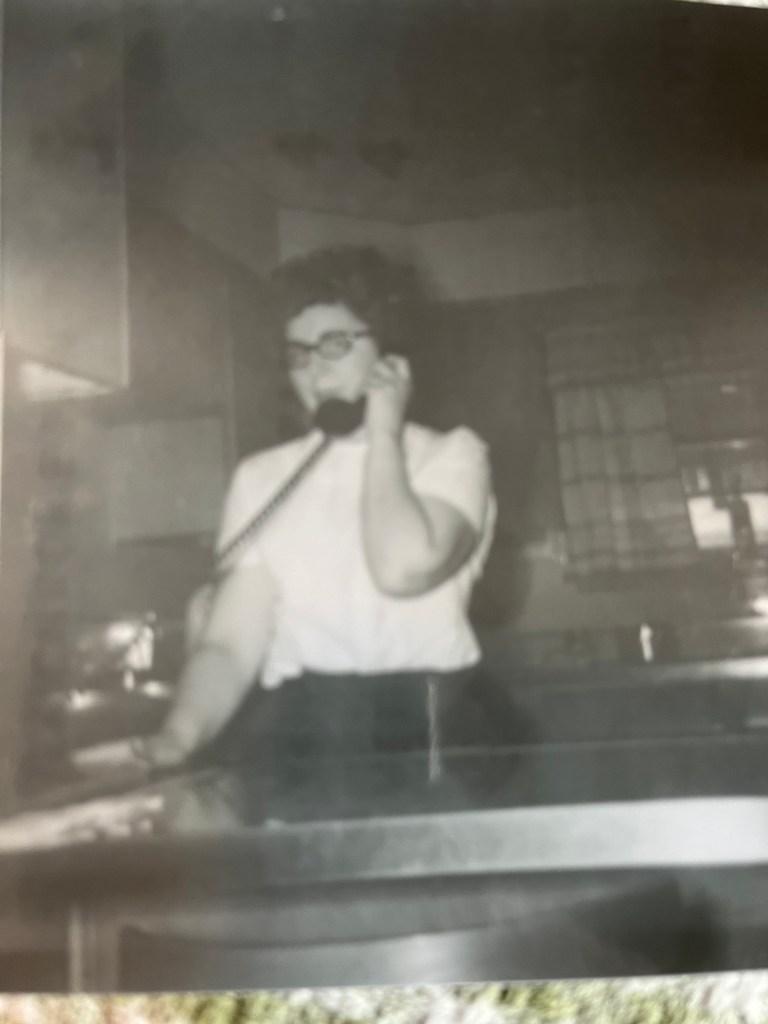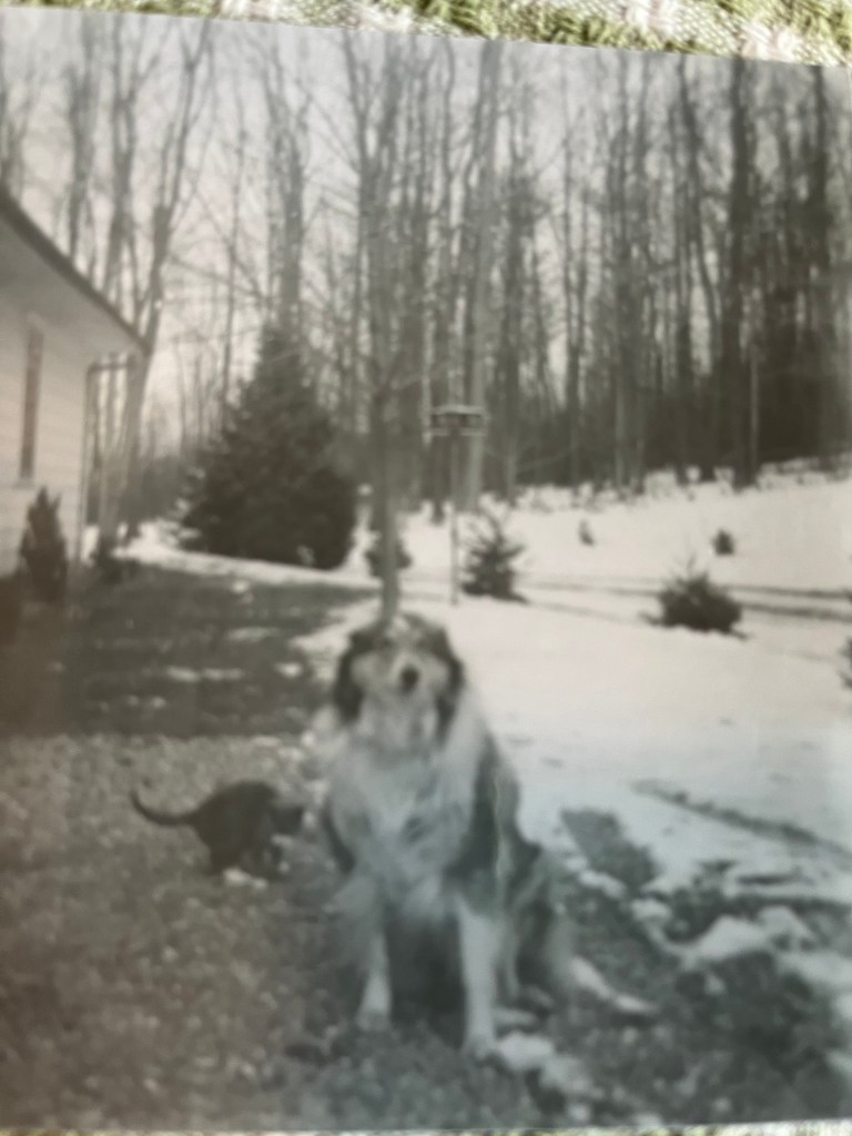 They were black and white. There were several pictures of my Collie dog, Lady, and an unnamed cat. There was a picture of my mother on the phone located in our kitchen. It was an old-style black phone connected to a “party line.” (Meaning multiple parties were on the same phone line and if one party was talking you could not use your phone to make your call until they hung up.)