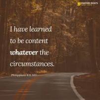 “Contentment is now, not when.” That is the word of revelation God spoke to me one evening while driving home from my office many years ago. I choose contentment today over discontentment. My Father has given me everything I need and I can trust Him for everything needed in the future. Contentment is the state of my heart.